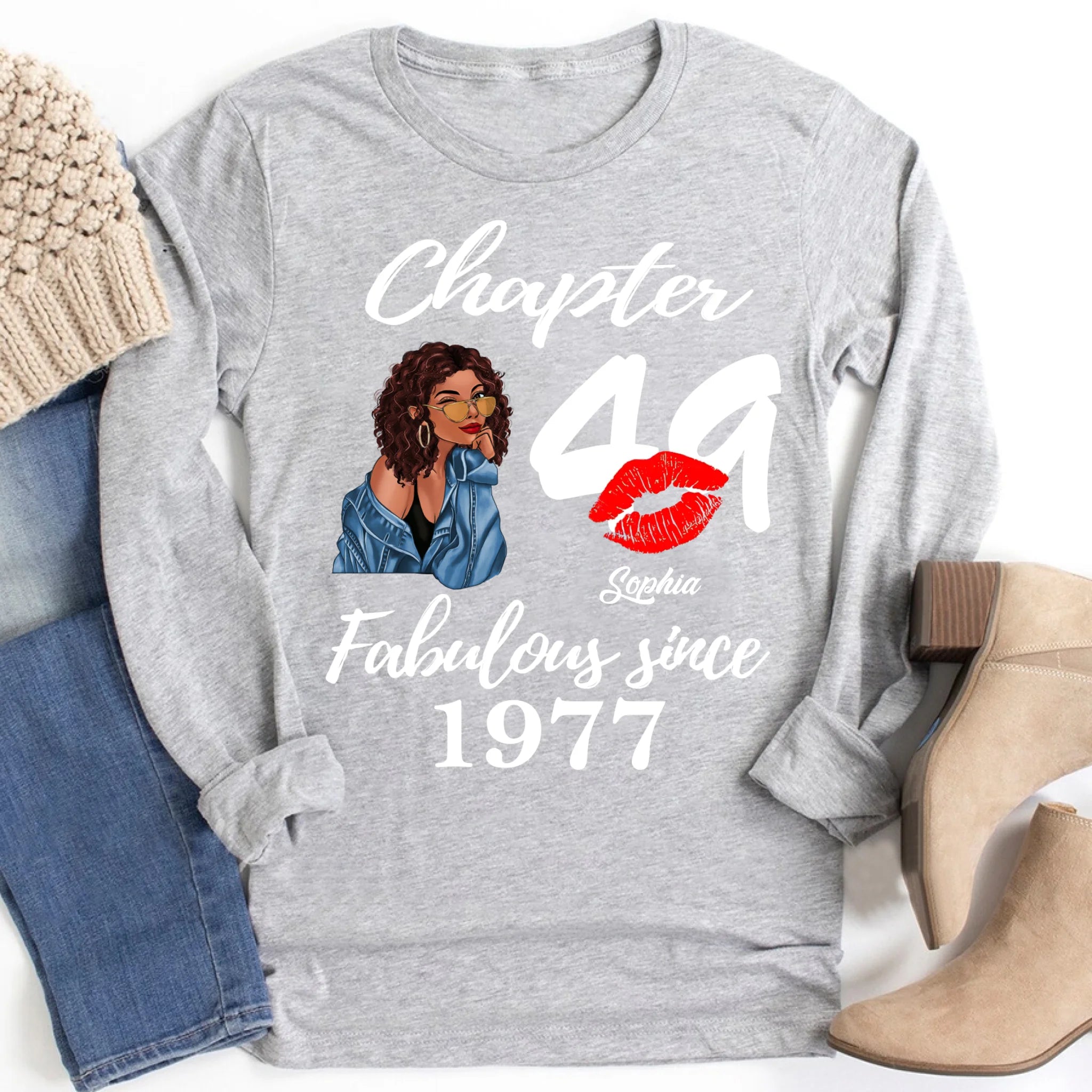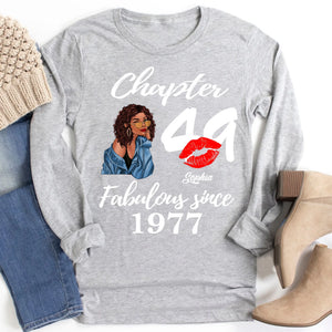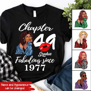 Custom Birthday Shirts, Chapter 49, Fabulous Since 1977 49th Birthday Unique T Shirt For Woman, Her Gifts For 49 Years Old, Turning 49 Birthday Cotton Shirt