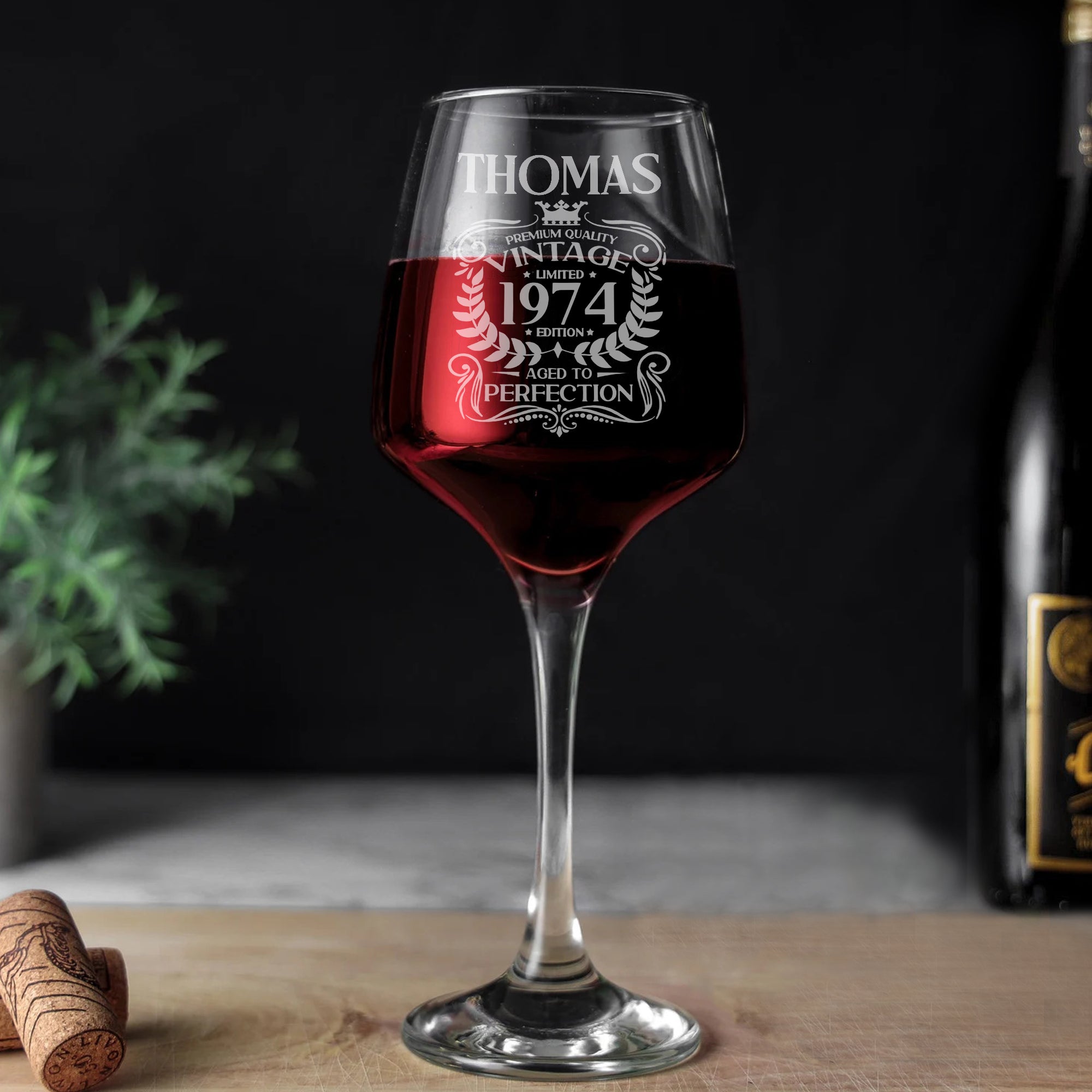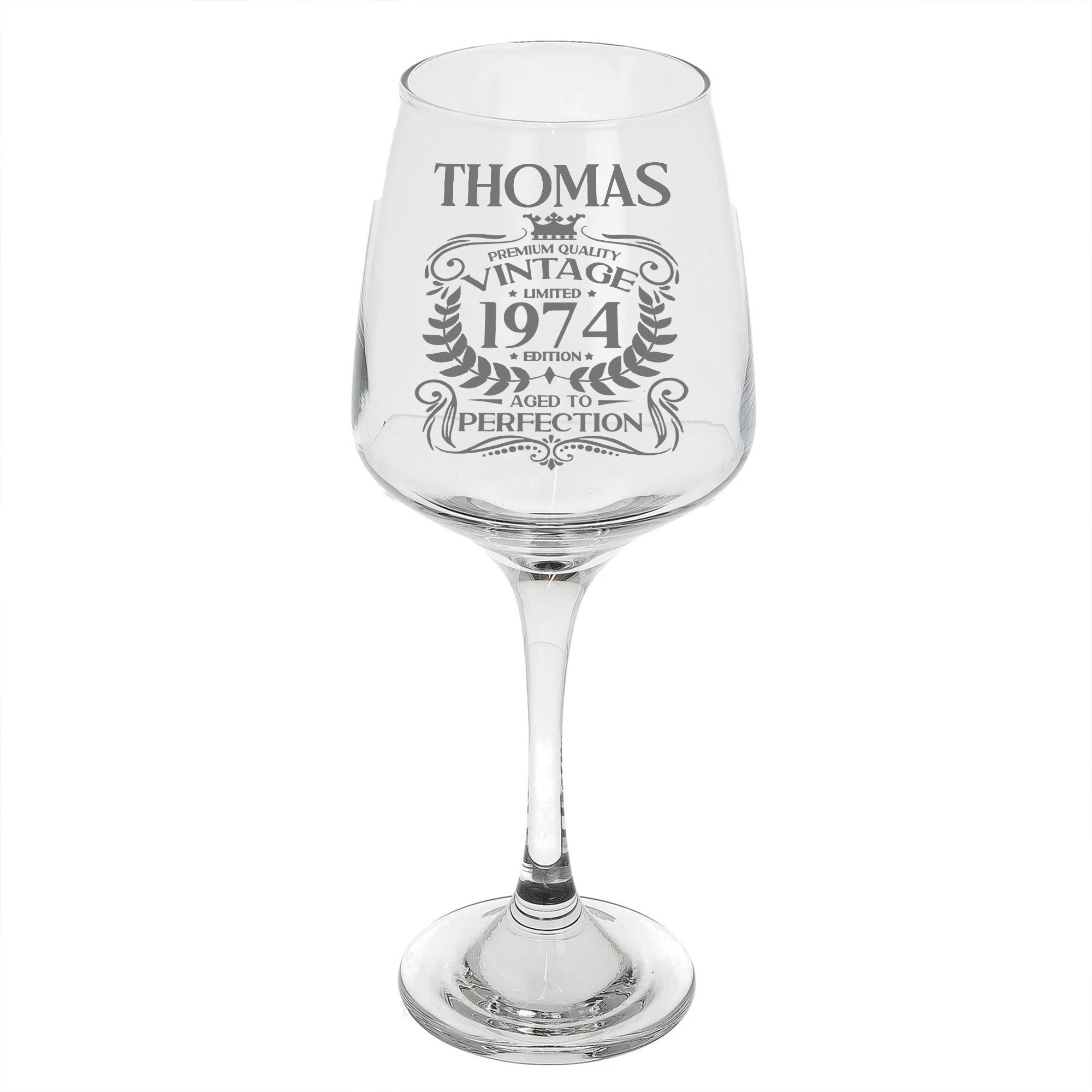 Vintage 1974 Engraved Wine Glass - 50th Birthday Aged to Perfection - Gifts for 50 Year Old – 50th Birthday Red White Rose Wine Glass-YPT-HMT