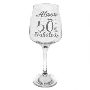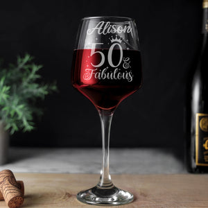 50 and Fabulous Engraved Wine Glass –50th Birthday Glass – Gifts for 50 Year Old – 50th Birthday Red White Rose Wine Glass-YPT-ALK