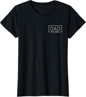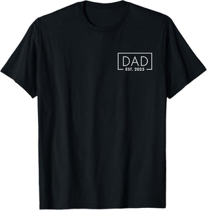 Celebrate new fatherhood with our humorous 'Funny 1st Time Dad EST 2025' T-Shirt, perfect for the soon-to-be or first-time dad in your life. This lightweight, 100% cotton T-Shirt features a crew neck and short sleeves, with a classic fit and double-needle sleeve and bottom hem for durability. The letter print design promotes the new dad's 'promotion' to daddy in 2025, making it an ideal gift for Father's Day or any special occasion. Machine washable for easy care, this unisex T-Shirt is available in black and a standard length, fitting like a medium in US sizing.