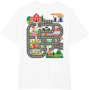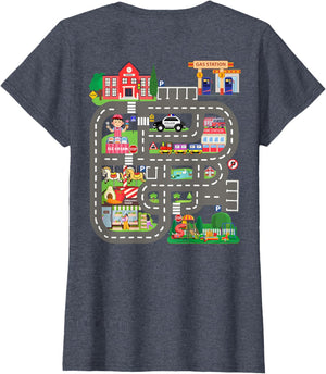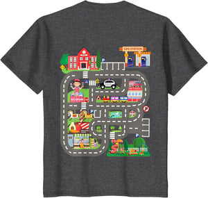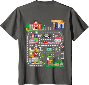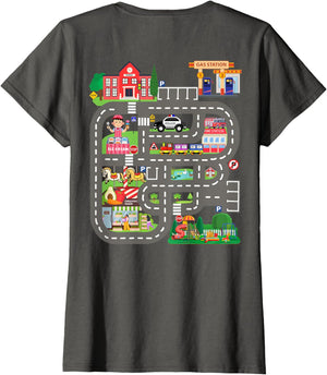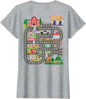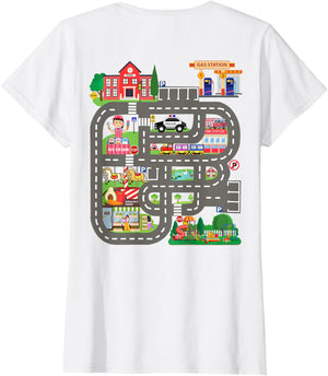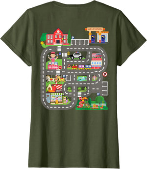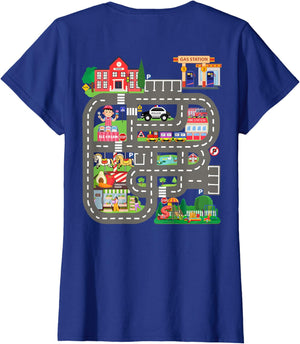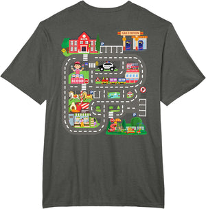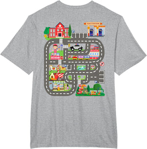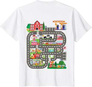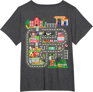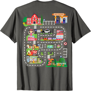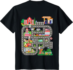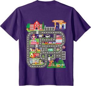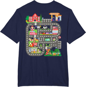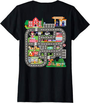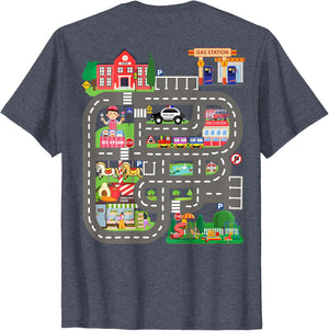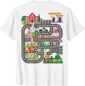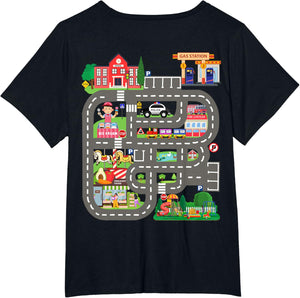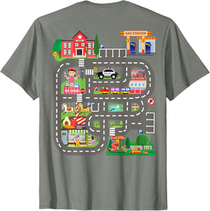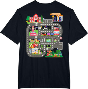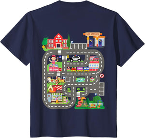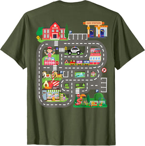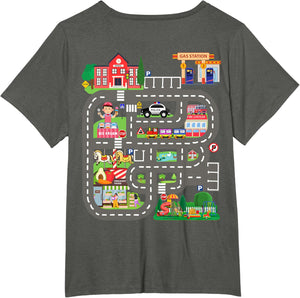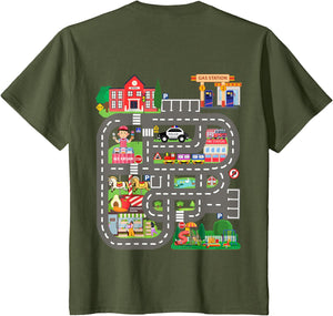 • This design allows kids to play cars on dad's or mom's back, featuring a mat with a car track, school, traffic signs, train, fire station, police car, playground, grocery store, and ice-cream shop for imaginative pretend play.