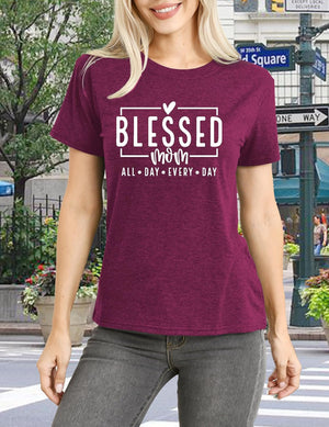 CQF Women Mom Shirt Blessed Mom All Day Every Day Letter Print T-Shirt Best Mama Tee Tops