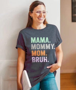 1*Mama Mommy Mom Bruh Funny Letter Print Short Sleeve T-Shirt for Women