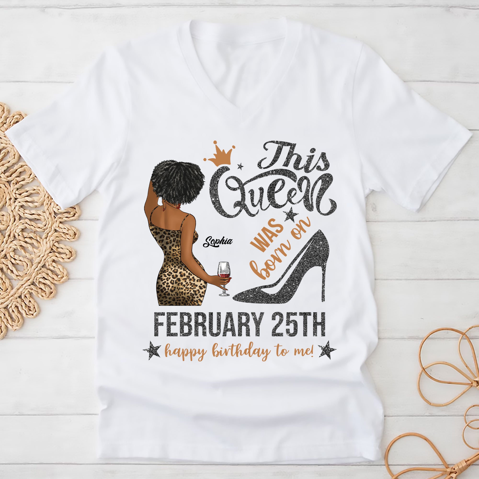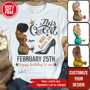 Custom February Birthday Shirt For Woman, Queens Are Born In February Gifts, Melanin Afro Woman Shirt, Black Girl Tee, Afro Queen Gift-YPT-ALK