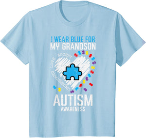Grab this cute Blue For Grandson Autism Awareness T-Shirt as a gift for your autistic boy, girl, son or daughter! Show support wearing this puzzle blue ribbon rainbow infinity outfit for men, women, kids on World Autism Awareness Day on April 2nd