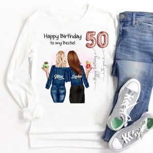 Custom Best Friend Birthday Greeting Shirt , For Sisters, BFF, Bestie. Happy Birthday Shirt For 18th 21st 25th 30th 35th 40th 50th 60th