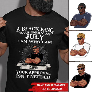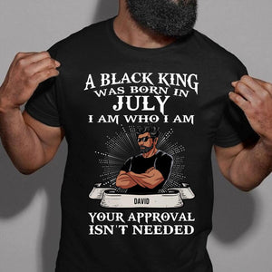 July Birthday Shirt, Custom Birthday Shirt, A Black King was born in July I am Who I am Your Approval isn't needed, July Birthday Shirts For Man, July Birthday Gifts. birthdayking