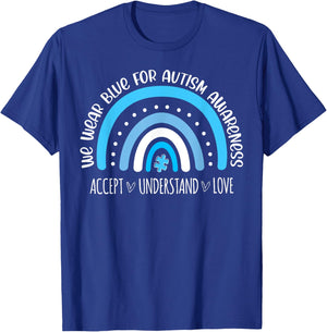 Grab this We Wear Blue for Autism Awareness Outfits for Family, Men, Women, Mom, Dad, Grandma, Grandpa, Sped Teacher or yourself and show support by wearing this acceptance outfit on World Autism Awareness Month in April ( April 2nd )