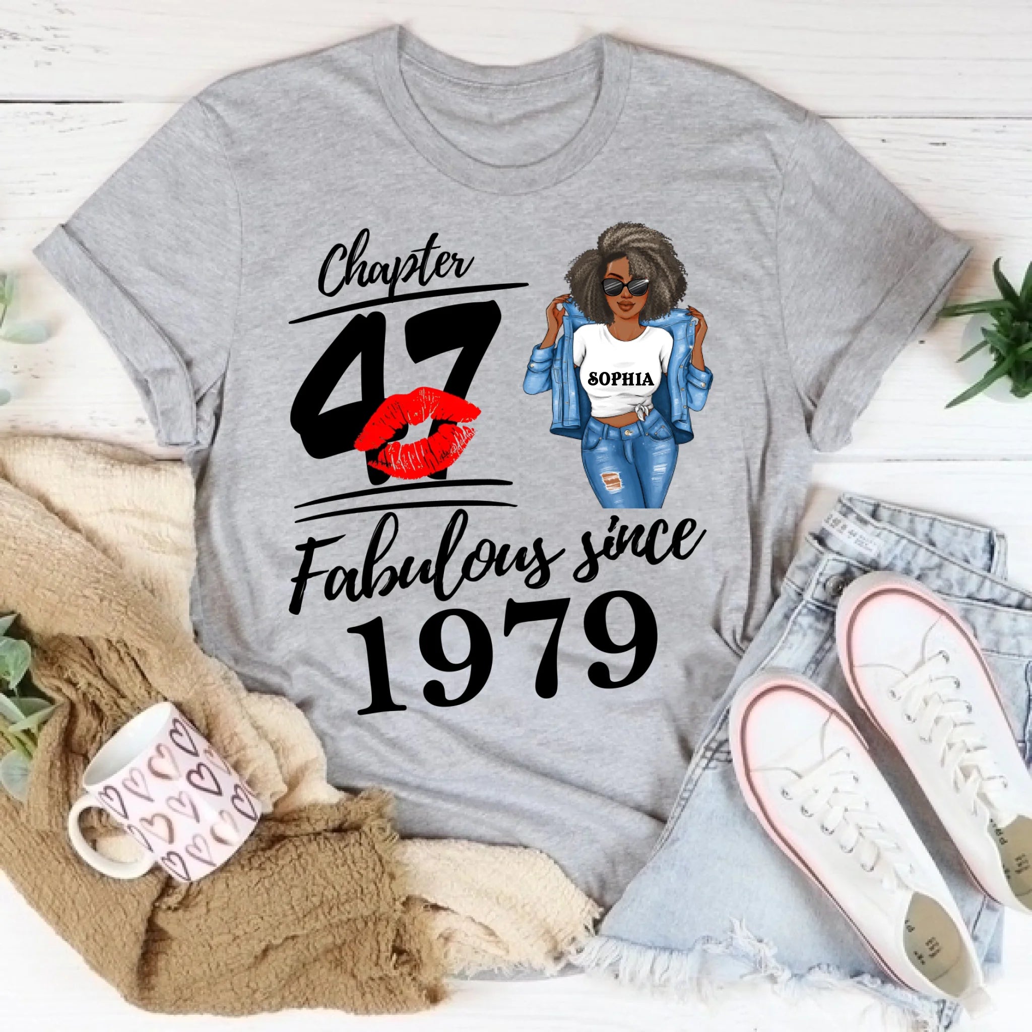 Chapter 47, Fabulous Since 1979 47th Birthday Unique T Shirt For Woman, Custom Birthday Shirt, Her Gifts For 47 Years Old , Turning 47 Birthday Cotton Shirt